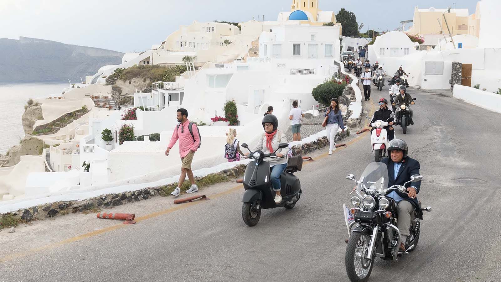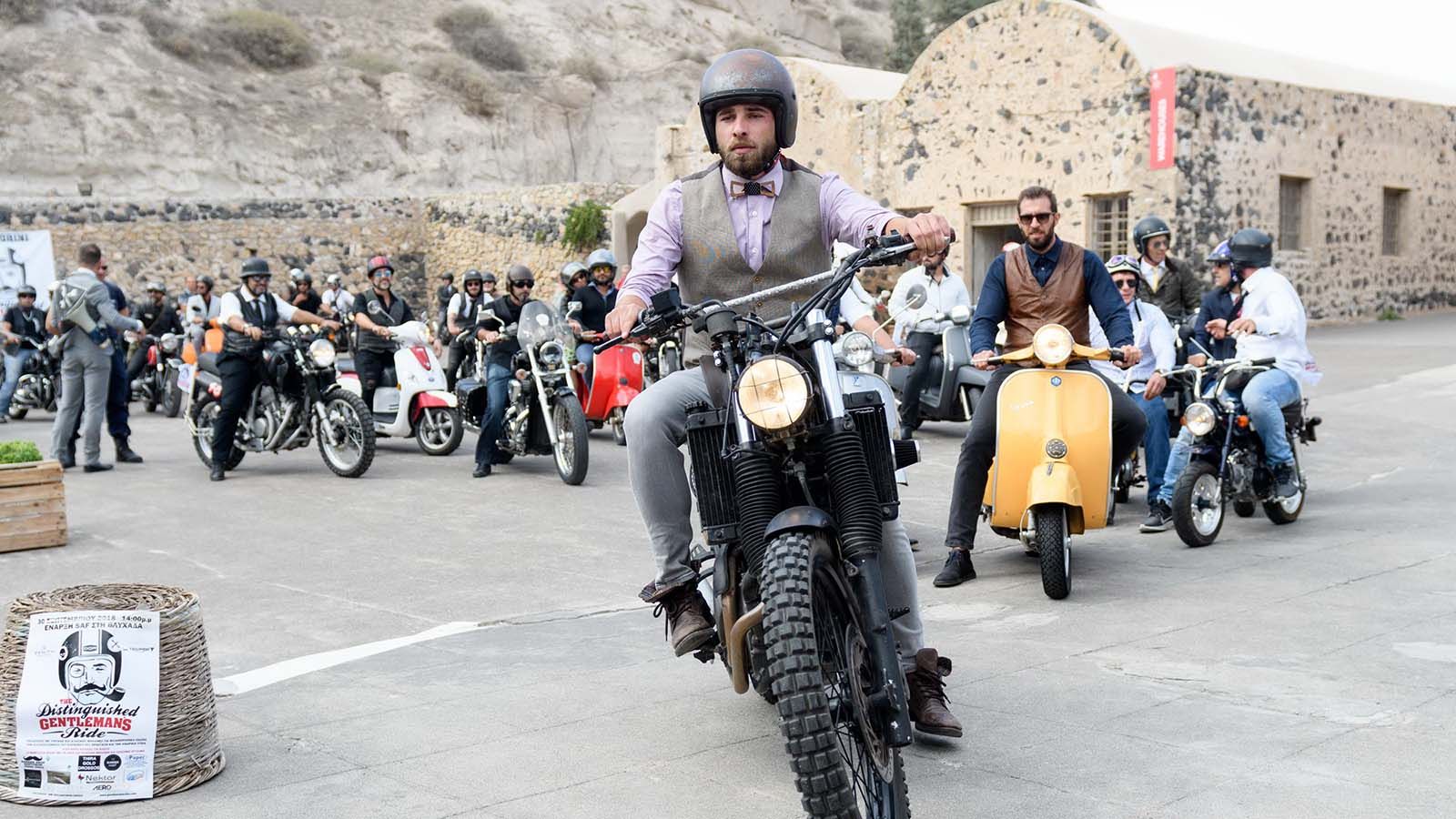 Το χαρακτηριστικό του Distinguished Gentleman s Ride Santorini είναι η συμμετοχή της τοπικής κοινωνίας δηλαδή των κατοίκων της Σαντορίνης, οι οποίοι επίσημα ντυμένοι και πίσω από το τιμόνι της vintage ή custom μοτοσυκλέτας τους, πορεύονται μαζί σε όλο το νησί.