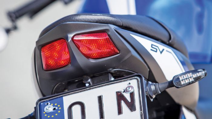 Σύγχρονος ο σχεδιασμός του πίσω μέρους, με τα LED φώτα να παραπέμπουν κατευθείαν σε GSX-R.