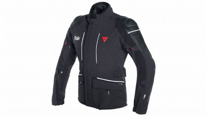 Aδιάβροχο sport-touring jacket, µε δερµάτινα στοιχεία και αφαιρούµενη εσωτερική θερµική επένδυση µε την τεχνολογία προστασίας του αναβάτη D-Air® airbag system.
