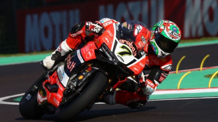 Για δεύτερη φορά στην σεζόν, ο Ουαλός Chaz Davies πετυχαίνει διπλή νίκη, οδηγώντας στον Imola της Ιταλίας, ακολουθούμενος σταθερά από τα δύο Kawasaki των Rea και Sykes.