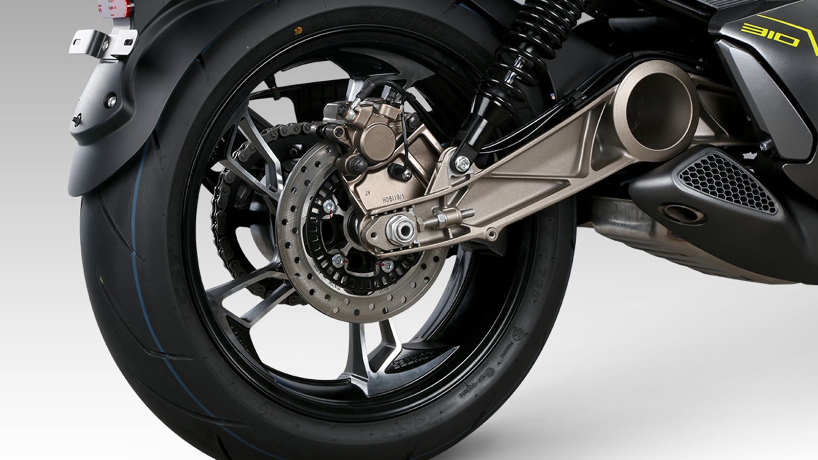 Η V310 διαθέτει ζάντες από ελαφρύ αλουμίνιο με ειδική εσωτερική σχεδίαση που εξασφαλίζει υψηλή ανθεκτικότητα. Μπροστά ο τροχός είναι 3,5x17 με ελαστικό 110/70 R17 και πίσω 5 x 17 με ελαστικό 180/55 R17.