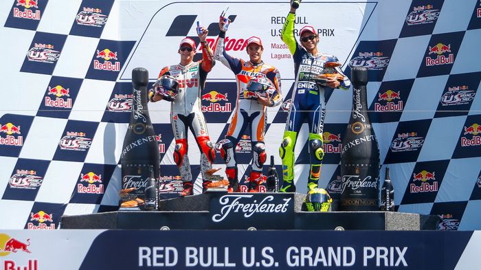 Πλέον στην κατάταξη, ο Marquez προηγείται 16 πόντους από τον Pedrosa, ενώ ο Rossi πέρασε στην κατάταξη τον Crutchlow, και μπήκε στο παιχνίδι του τίτλου και αυτός. Τα πράγματα ζωντανεύουν! Σημειώστε πως στη Laguna Seca δεν έτρεξαν οι αναβάτες των πρωταθλημάτων Moto2 και Moto3.