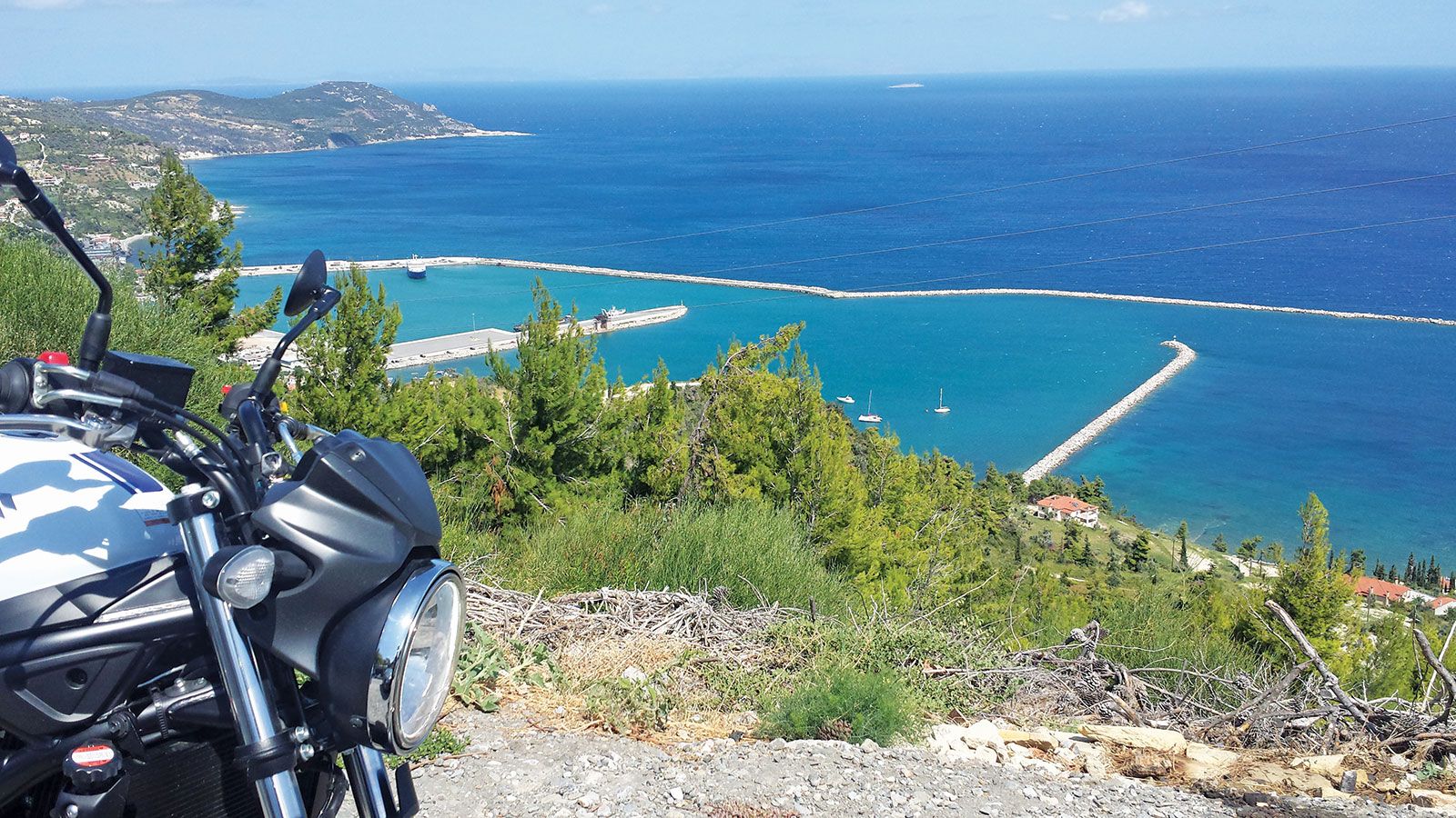 Η ώρα των διακοπών είχε, επιτέλους, φτάσει για εμάς και ανυπομονούσαμε να ταξιδέψουμε με το Suzuki. Ένα μαγνητικό tank bag κι ένα μεγάλο σακίδιο χώρεσαν όλα τα απαραίτητα πράγματα. Ο τελικός προορισμός θα ήταν η Κύμη, το «μπαλκόνι του Αιγαίου», στην κεντρική Εύβοια. Με το σύστημα Easy Start, ένα πάτημα στο κουμπί της μίζας είναι αρκετό για να μπει σε λειτουργία ο κινητήρας. Τα πρώτα χιλιόμετρα θα γίνουν στην εθνική οδό, αν και θα μπορούσαμε να την αποφύγουμε περνώντας με ferry boat στην Εύβοια. Δεν το επιλέγουμε, γιατί θέλουμε να οδηγήσουμε περισσότερο το Suzuki. Ο αέρας είναι δυνατός στη εθνική και η απουσία ζελατίνας, μας αναγκάζει να πηγαίνουμε με χαμηλότερες από το φυσιολογικό ταχύτητες.
