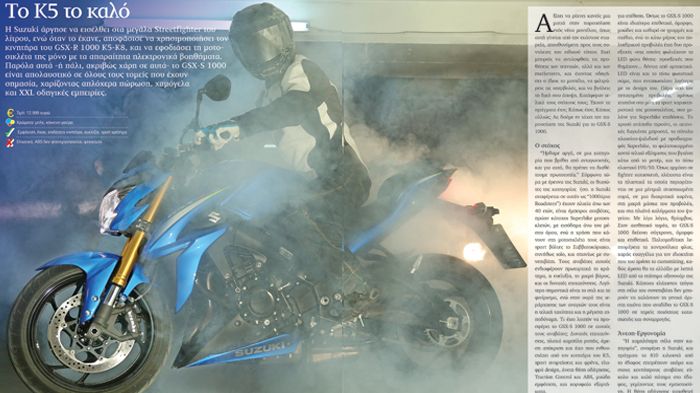 Η Suzuki άργησε να εισέλθει στα μεγάλα streetfighter του λίτρου, ενώ όταν το έκανε, αποφάσισε να χρησιμοποιήσει τον κινητήρα του GSX-R 1000 K5-K8 και να εφοδιάσει τη μοτοσικλέτα της μόνο με τα απαραίτητα ηλεκτρονικά βοηθήματα. Παρόλα αυτά -ή πάλι, ακριβώς χάρη σε αυτά- το GSX-S 1000 είναι απολαυστικό σε όλους τους τομείς που έχουν σημασία, χαρίζοντας απλόχερα πώρωση, χαμόγελα και XXL οδηγικές εμπειρίες.