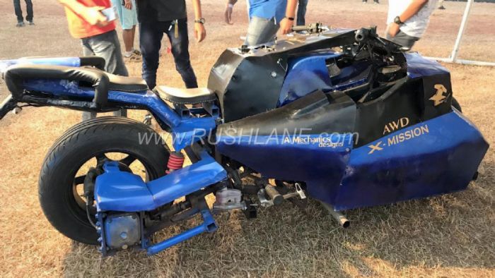 Ένας 20χρονος μαθητής στην Ινδία κατάφερε να φτιάξει μια μοτοσυκλέτα χρησιμοποιώντας κινητήρα 800 κυβικών από αυτοκίνητο με κίνηση στους 2 τροχούς και 4τάχυτο κιβώτιο ταχυτήτων με όπισθεν.