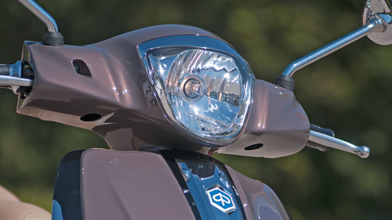 Μπροστά έχουμε μια από τα ίδια με το νέο φτερό και τα νέα πιο αιχμηρά φλας με τα φώτα ημέρας LED να δίνουν μια απόλυτα σύγχρονη εικόνα που ενισχύεται από τον πίνακα πληροφοριών, απευθείας από τις μικρές Vespa. Τα περισσότερα και μεγαλύτερα φιλέτα χρωμίου προσθέτουν παράλληλα και μερικούς πόντους πολυτέλειας.