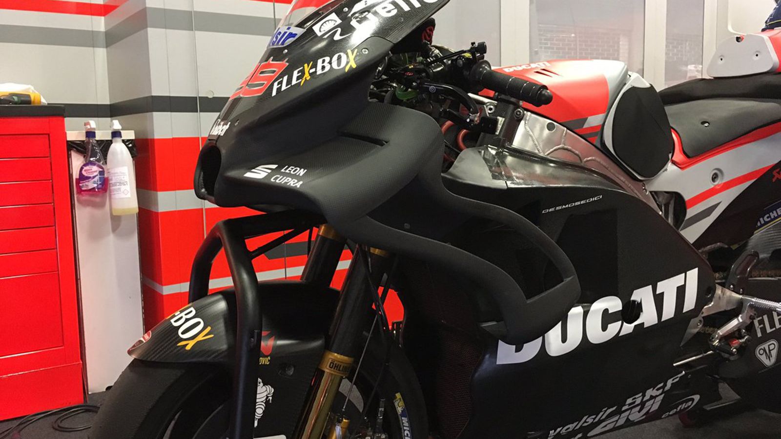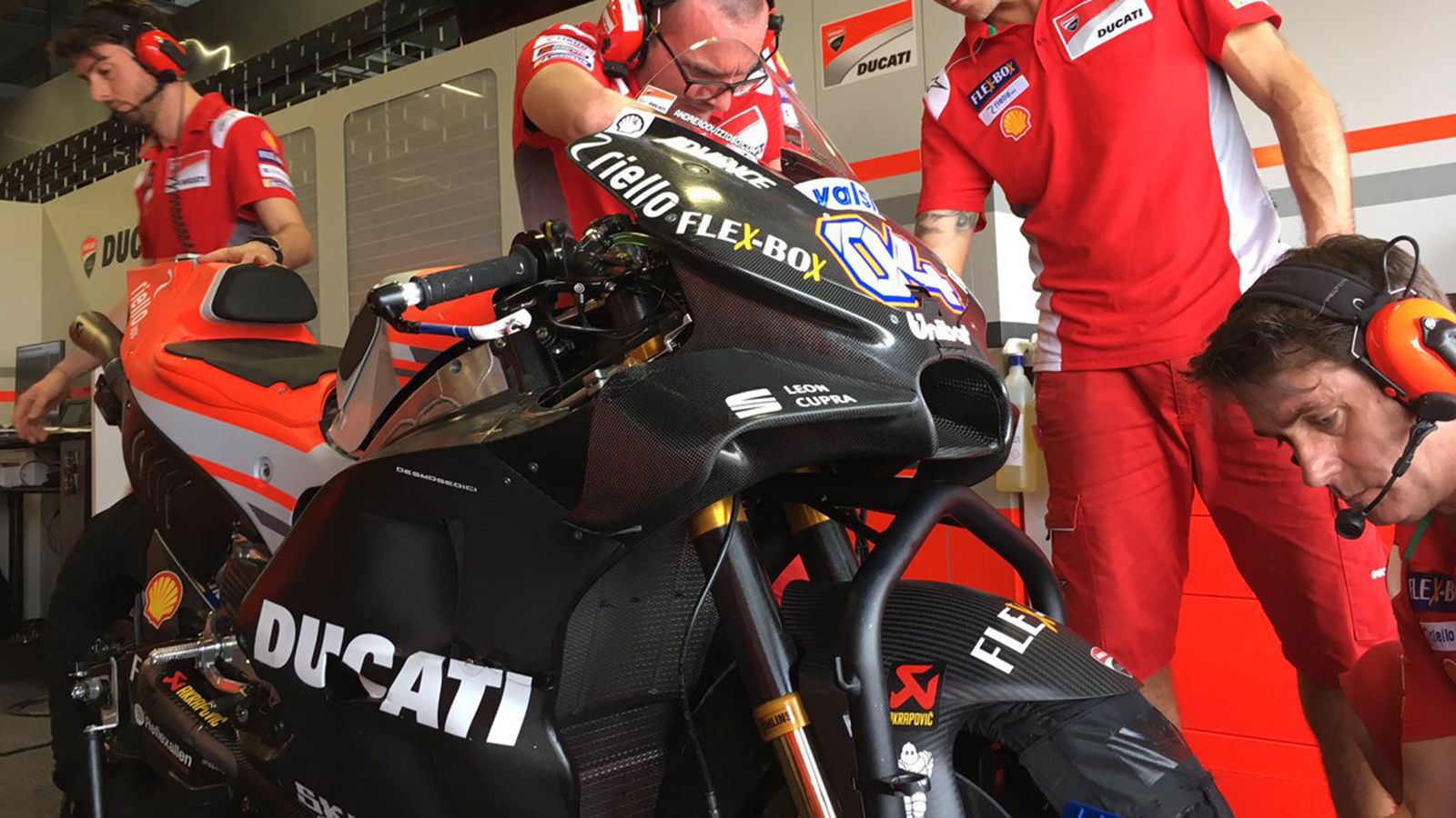 Η Ducati, καθώς ήταν η εταιρεία που επλήγη στον μεγαλύτερο βαθμό από την απαγόρευση των πτερυγίων το 2016, εξελίσσει «εξωτικές» λύσεις προκειμένου να είναι σύμφωνη με τους κανονισμούς, με τον Jorge Lorenzo να είναι αυτός που χρησιμοποίησε το περσινό αεροδυναμικό fairing μέχρι το τέλος της σεζόν.