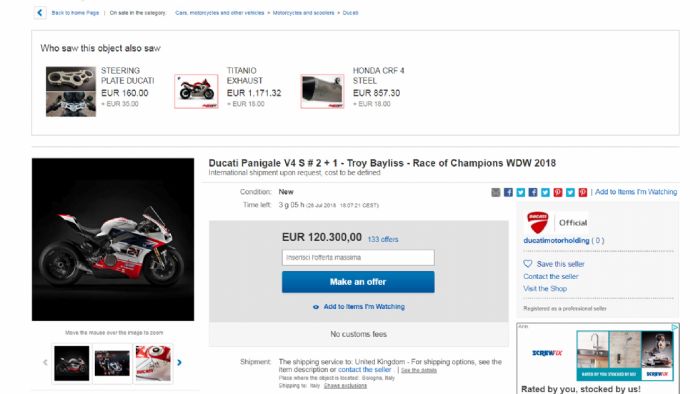 Αστρονομικό θα είναι το ποσό που θα χρειαστεί να καταβάλλει αυτός που θα αποκτήσει την Panigale V4 στα χρώματα του Troy Bayliss! Δείτε που έφτασε το ποσόν…