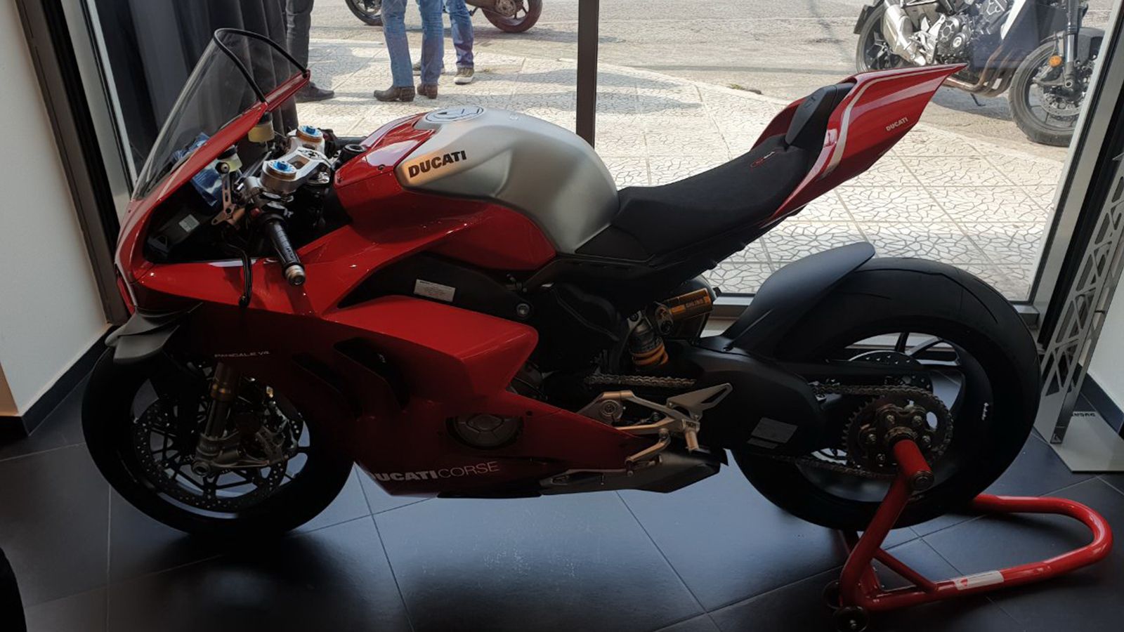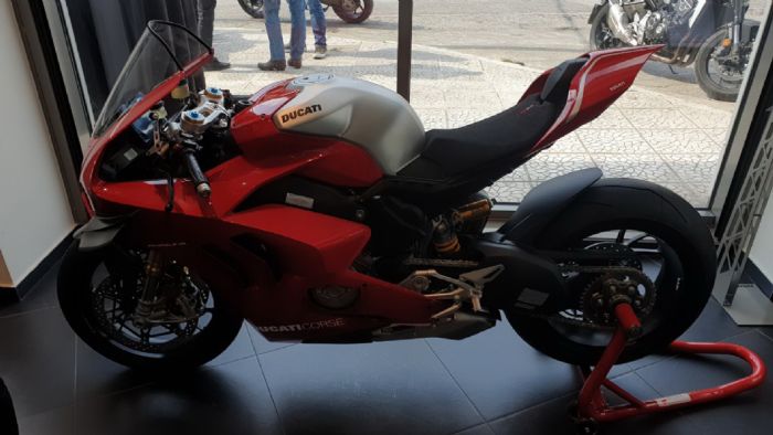 Αστέρι της βραδιάς ήταν η μοναδική Panigale V4R, η κορυφαία μοτοσυκλέτα της Ducati με τα πτερύγια και τους 225 ίππους. Στον χώρο βρισκόταν ο Γιώργος Παπασταύρου, συνεργάτης μας και επίσημος οδηγός της Ducati Ελλάδος, ο οποίος θα αγωνιστεί με μια Panigale V4R στο πρωτάθλημα ταχύτητας και πόζαρε με την μοτοσυκλέτα για μια αναμνηστική φωτογραφία.