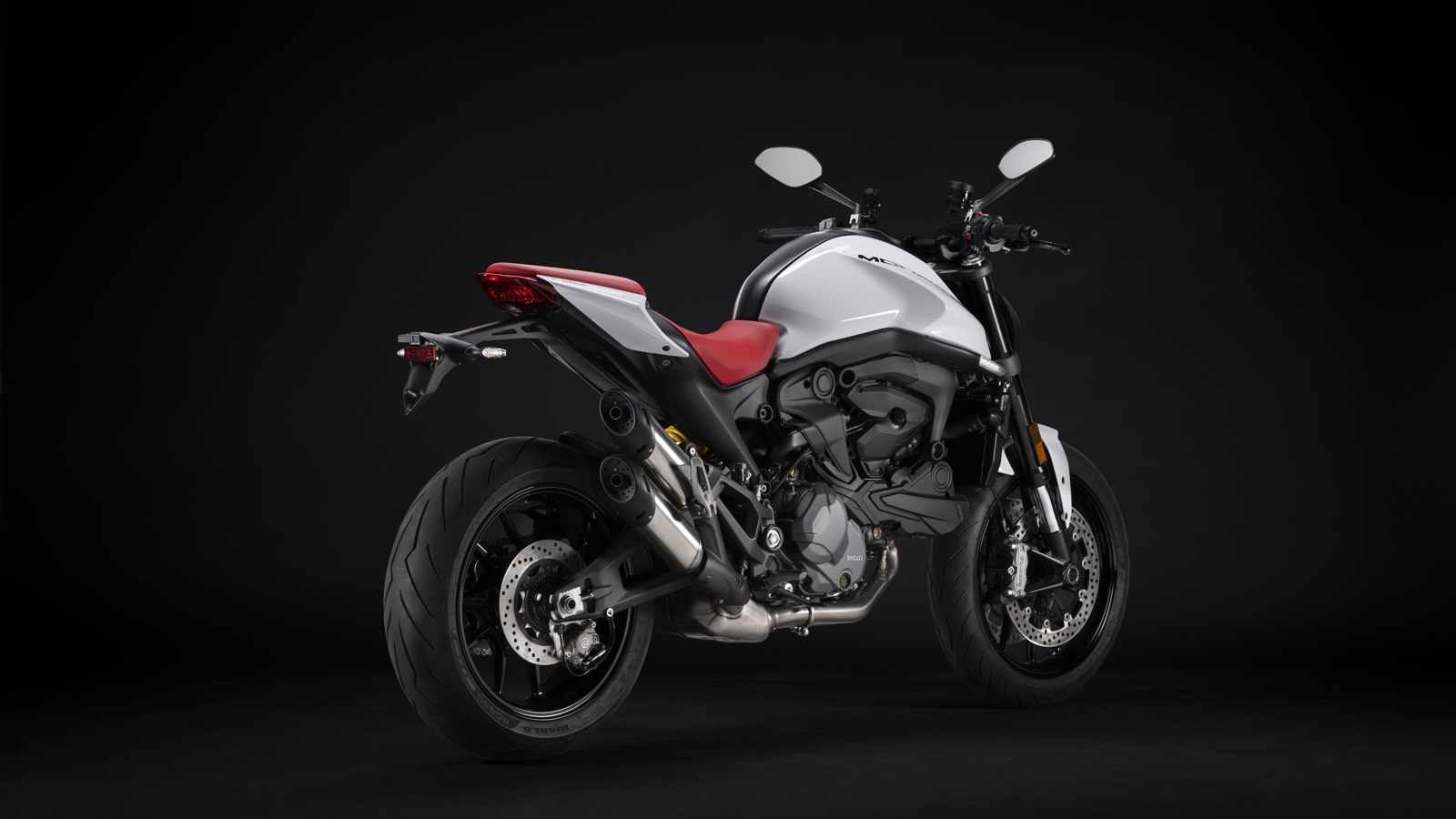 Το νέο χρώμα αναδυκνείει τις καθαρές γραμμές του Monster χάρη στον συνδυασμό του λευκού Iceberg White και του Ducati Red που επιλέχθηκε για το φινίρισμα του καθίσματος. Ο συνδυασμός των δύο χρωμάτων δημιουργεί μια εκλεπτυσμένη και σύγχρονη εμφάνιση. Μια σπορ πινελιά δίνουν οι κόκκινες ταινίες στους τροχούς.