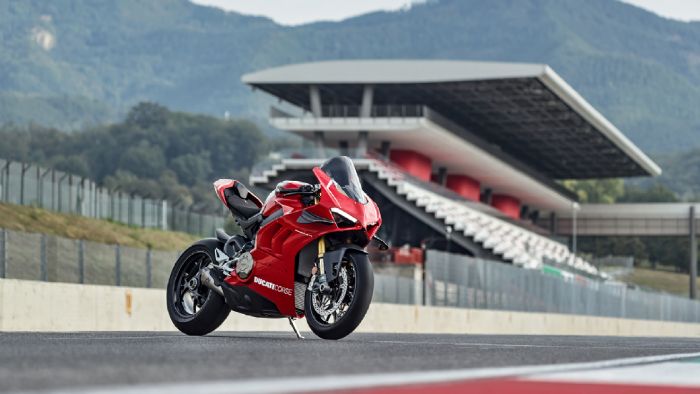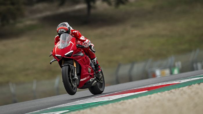 Ο κινητήρας της V4R έχει φυσικά λιγότερα κυβικά (998, αντί για 1.103), αλλά χάρη στην κοντύτερη διαδρομή εμβόλου των 48,4 χιλιοστών, έχει ανεβασμένο τον κόφτη στο αστρονομικό νούμερο των 16.500 στροφών ανά λεπτό! Ως αποτέλεσμα, η μέγιστη ισχύς της μοτοσυκλέτας ανέρχεται στους 221 ίππους και 11,3 kgm ροπής, μια τιμή που σκαρφαλώνει στην κορυφή της top κλάσης superbikes.