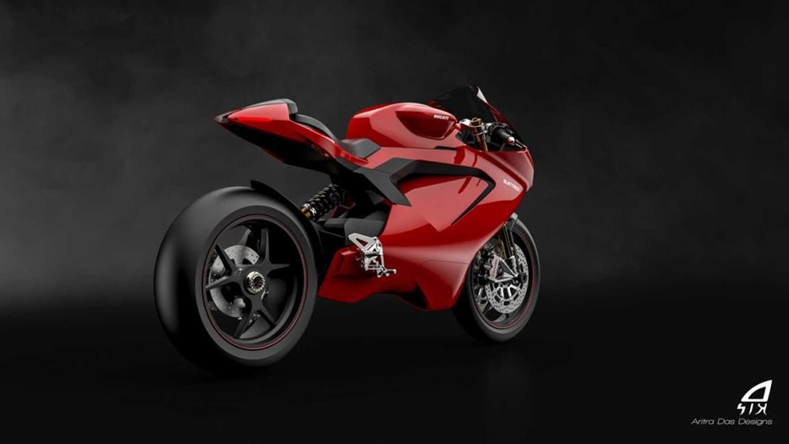 Δείτε, για παράδειγμα, αυτές τις εικόνες, που δημιούργησε ο σχεδιαστής με την επωνυμία Aritra Das, ο οποίος έχει την δική του ιδέα για το πώς θα μπορούσε να είναι η μοτοσυκλέτα. Προσέξτε την σχεδίαση αυτής της «Panigale»: Μέσω photoshop και 3D rendering, o σχεδιαστής έφτιαξε μια μορφή που συμφωνεί με την «μέση» ηλεκτρική superbike. Το κόκκινο χρώμα κυριαρχεί, ενώ οι μάζες εμφανίζονται συγκεντρωμένες στο κέντρο της μοτοσυκλέτας (που φιλοξενεί την μπαταρία και τον ηλεκτροκινητήρα). Κατά τα άλλα, ο Aritra Das διατήρησε τα χαρακτηριστικά Ducati στοιχεία, όπως το μονόμπρατσο πίσω, το χαρακτηριστικής εμφάνισης εμπρός σύστημα και τα σφηνοειδή σχήματα στο μούτρο.