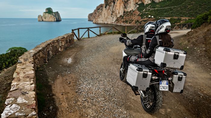 Πλούσιος ο έξτρα εξοπλισμός του Multistrada Enduro στον οποίο θα βρείτε και τις αλουμινένιες βαλίτσες της Touratech.