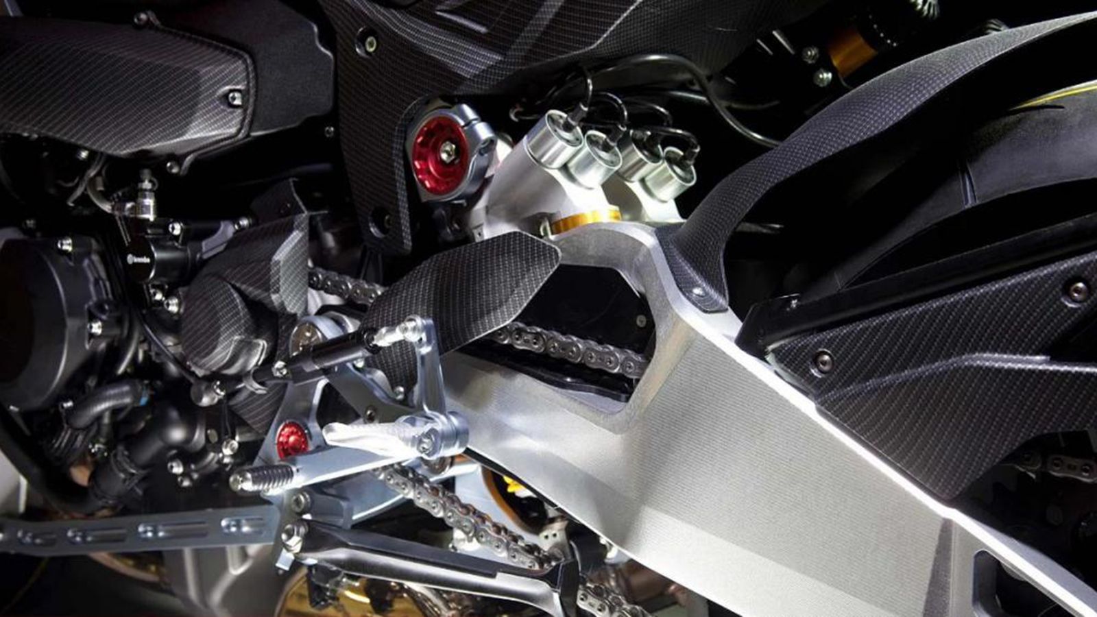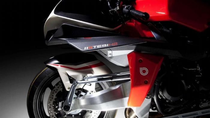 Φυσικά, καθώς μιλάμε για μία Tesi, το σύστημα εμπρόσθιας ανάρτησης με ψαλίδι και hub-steering κυριαρχεί: Το εμπρός ψαλίδι συνδέεται με αμορτισέρ, τοποθετημένο πίσω από τον κινητήρα, μέσω συνδέσμων, ενώ το τιμόνι μεταδίδει τις δυνάμεις από τον αναβάτη απευθείας στον τροχό μέσω ανάλογων μεταλλικών ράβδων. Από τις φωτογραφίες, διακρίνουμε ότι η μοτοσυκλέτα φέρει ένα «τμήμα πλαισίου» εμπρός που θυμίζει Panigale, με τον κινητήρα να χρησιμοποιείται σαφώς ως δομικό στοιχείο –αν και η Bimota δηλώνει ότι η νέα Tesi χρησιμοποιεί επίσης, το χαρακτηριστικό «τύπου Ωμέγα» σασί. Το πίσω ψαλίδι είναι επίσης νέο για την περίσταση.