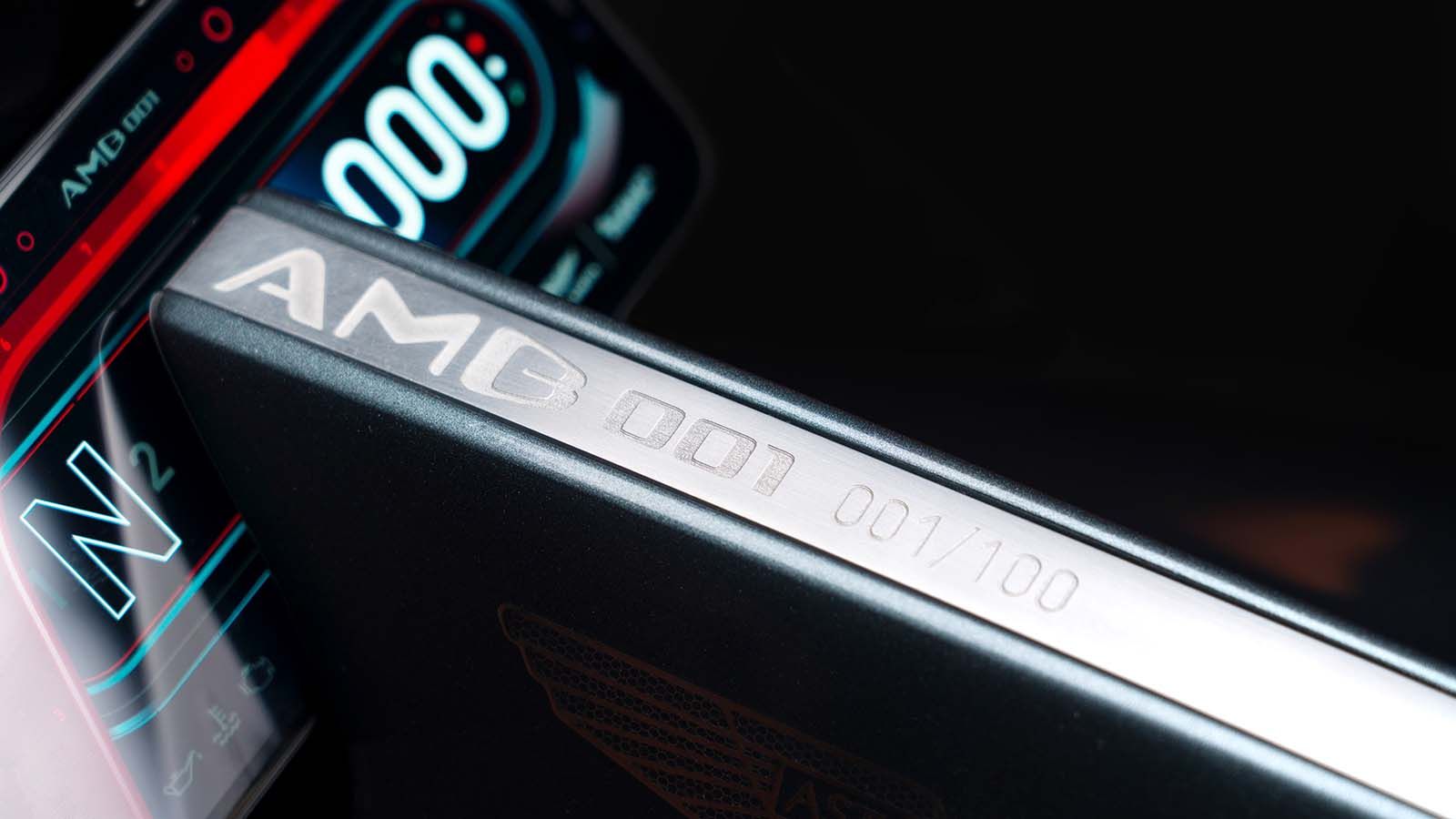 Η AMB 001 αντλεί την σχεδίαση της από τα τελευταία αυτοκίνητα της Aston Martin και είναι στοχευμένα φτιαγμένη ώστε να αποτελεί «άσκηση design» για πολύ απαιτητικούς αναβάτες και λάτρεις της μάρκας. Η AMB 001 είναι βαμμένη στα χρώματα Stirling Green και Lime Essence, τα οποία συνδυάζονται με τις αποχρώσεις του αλουμινίου και του carbon που κυριαρχούν στην κατασκευή της.