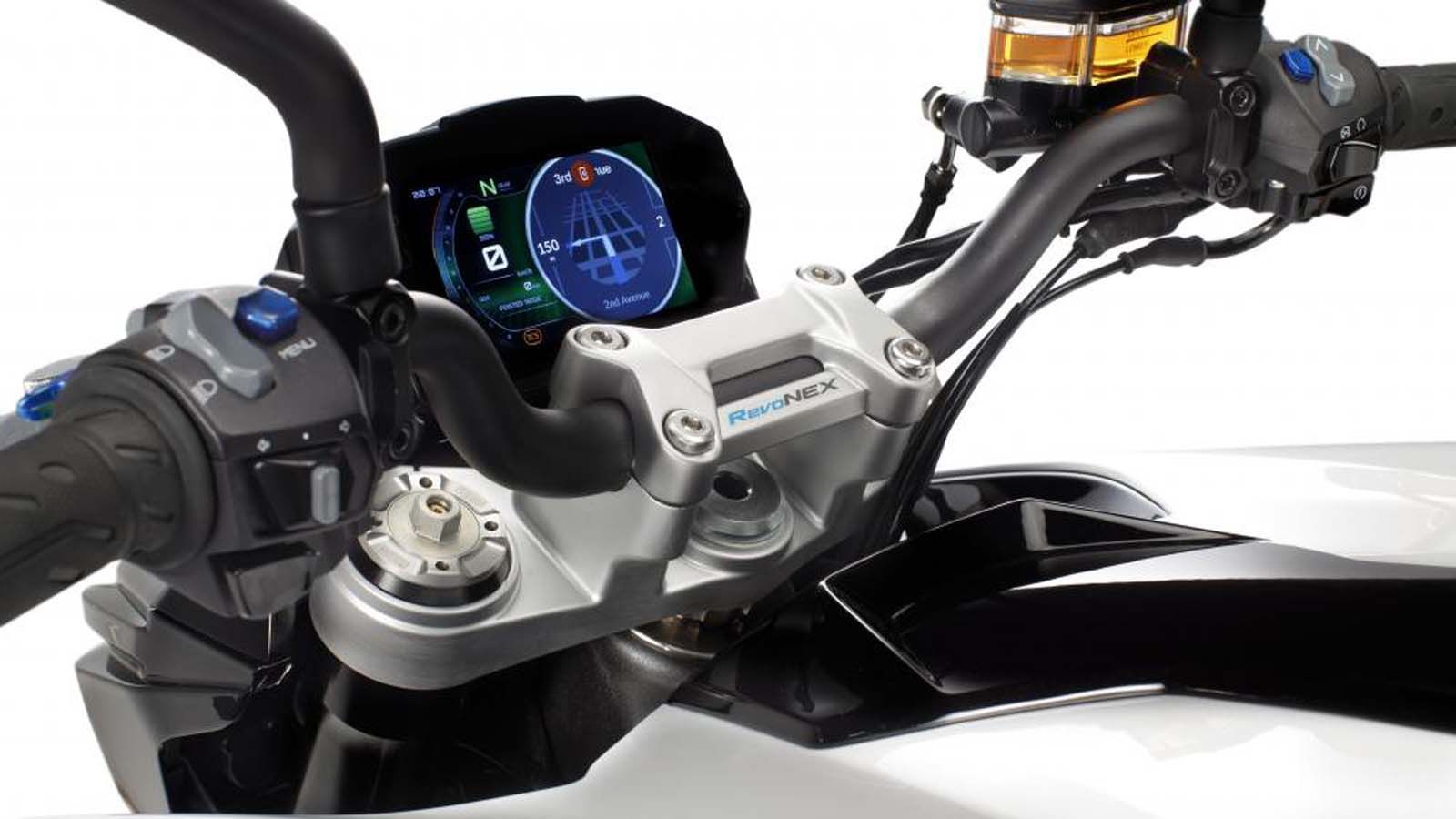 Η καθημερινότητα αλλάζει συνεχώς τις συνθήκες της και όλες οι σύγχρονες μοτοσυκλέτες έχουν προσαρμοστεί σε αυτό το δυναμικό περιβάλλον μέσω των επιλογών στις οδηγικές τους επιλογές (Riding Modes). Το RevoNEX όχι μόνο δεν αποτελεί εξαίρεση, αλλά έρχεται με το πλέον εκκεντρικό -ως προς την ονοματολογία- πακέτο επιλογών. Έτσι, στις ρυθμίσεις του AMP (Adaptive Machine Personality) η ηλεκτρική μοτοσυκλέτα αποκτά προσωπικότητα. Poised για να μην ενοχληθεί κανείς τις ώρες κοινής ησυχίας, Assertive για όταν τα πράγματα ζωηρέψουν με πολιτισμένο τρόπο, Bold για το κάτι ακόμα παραπάνω και τέλος Extreme, με τη λέξη να προδίδει και τον τρόπο λειτουργίας και απόκρισης του RevoNEX.
