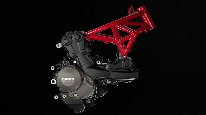 Το πλαίσιο δε θα μπορούσε να είναι άλλο από το χωροδικτύωμα που αποτελεί σήμα κατατεθέν των Monster. Ο κινητήρας αποτελεί κομμάτι του πλαισίου, με την ίδια λογική που και ο Superquadro κινητήρας αποτελεί κομμάτι του πλαισίου του Panigale. Χάρη σε αυτή την ιδιομορφία, το πλαίσιο προσφέρει, σύμφωνα με τη Ducati, σχεδόν τα διπλάσια επίπεδα ακαμψίας, σε σχέση με τα υπόλοιπα Monster. Επιπλέον, αυξημένο είναι και το μεταξόνιο, με αποτέλεσμα να ενισχύεται και η σταθερότητα της μοτοσικλέτας.