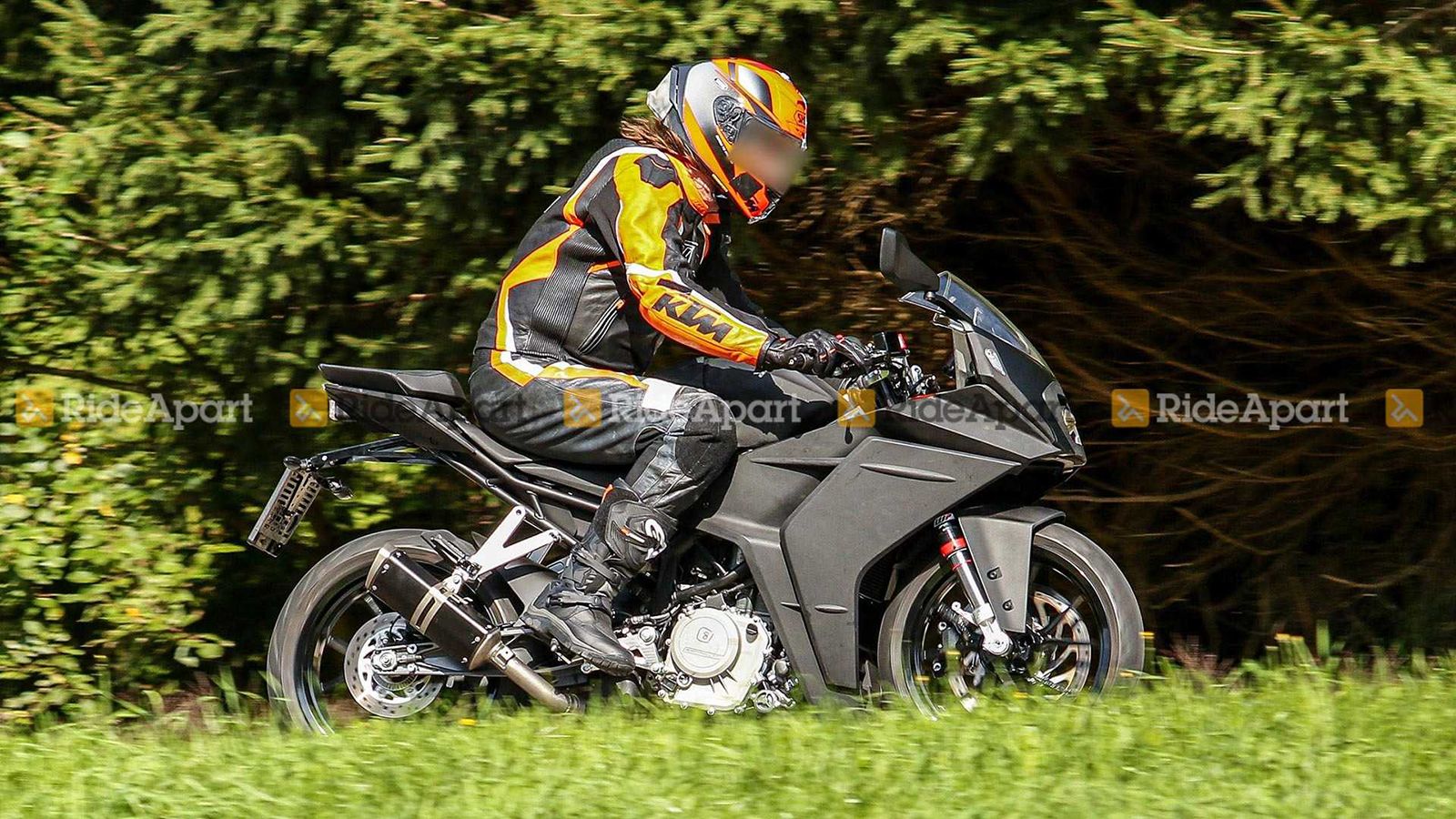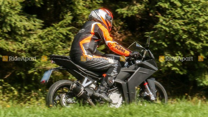 Δείτε τις εικόνες… Εμφανέστατη είναι η αλλαγή στην εμφάνιση του RC390: Το μοντέλο δοκιμής έχει ένα πολύ πιο ήπια σχεδιασμένο fairing, με πολύ λιγότερο αιχμηρές «γραμμές» στο μούτρο, διαφορετικά πλαϊνά πλαστικά και διαφορετικό εμπρός φανάρι. Το τελευταίο δεν είναι καθόλου βέβαιο, φυσικά, ότι θα παραμείνει έτσι μέχρι την παρουσίαση του μοντέλου, καθώς ο κυκλικός προβολέας μπορεί απλά να βρίσκεται εκεί για λόγους δοκιμής.