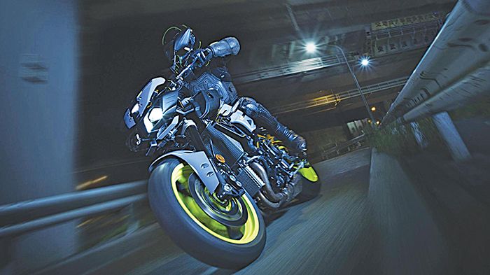 Τι έλειπε από την γκάμα των MT; Mα φυσικά ένα 1000άρι το οποίο μας ήρθε στη μορφή του MT-10. Η μοτοσικλέτα φέρει το πλαίσιο και τον τετρακύλινδρο του R1 με τον crossplane στρόφαλο, με απόδοση ταιριαστή με τον χαρακτήρα της γυμνής streetfighter που έχει το μικρότερο μεταξόνιο στην κατηγορία- 1.400 χλστ. Η Yamaha εξόπλισε το MT-10 με αμορτισέρ και ανεστραμμένο πιρούνι ΚΥΒ διαμέτρου 43χλστ. και δίσκους διαμέτρου 320χλστ. εμπρός με τετραπίστονες ακτινικές δαγκάνες. Δικλείδα ασφαλείας το ABS που ανήκει φυσικά στον standard εξοπλισμό του MT-10, όπως και το Traction Control (με 3 επίπεδα ρύθμισης) και ο υποβοηθούμενος συμπλέκτης ολίσθησης. Το «πακέτο» των ηλεκτρονικών βοηθημάτων συμπληρώνει το D-Mode της Yamaha, δηλαδή η επιλογή διαφορετικών τρόπων απόδοσης του κινητήρα (Standard, Sport και Rain). Eντύπωση προκαλεί το ότι η Yamaha συμπεριέλαβε στο εξοπλισμό του MT-10 cruise control, υποστηρίζοντας στη πράξη τους ισχυρισμούς της περί τουριστικών δυνατοτήτων της μοτοσικλέτας.