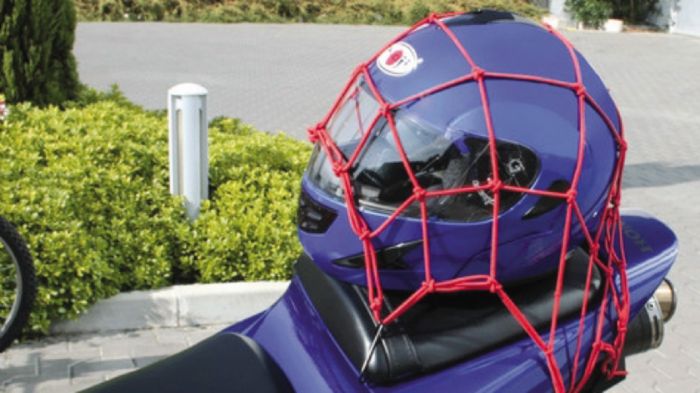Είναι εφοδιασμένο με 6 άγκριστρα για εύκολο και ασφαλές στήριγμα αποσκευών. Είναι κατάλληλο για δέσιμο κράνους, τσάντας πλάτης, βαλίτσας κτλ. Διαθέσιµο στο κατάστηµα E-Moto, www.e-moto.gr, τηλ.: 210-8252303.