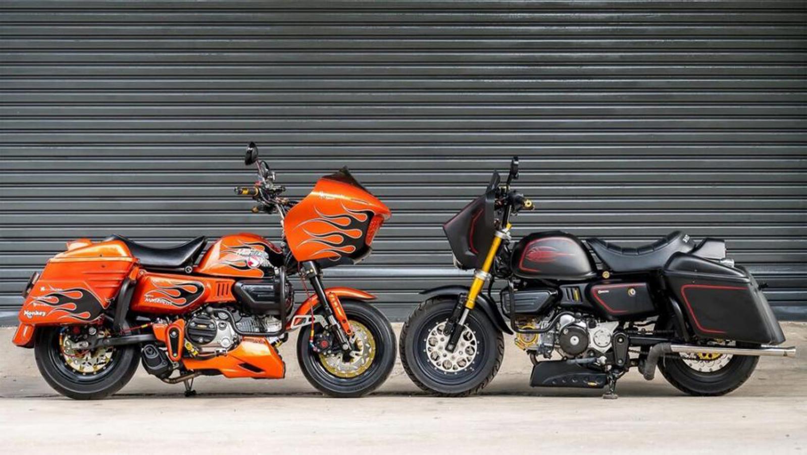 Αν παρατηρήσετε προσεκτικά της φωτογραφίες, θα διαπιστώσετε ότι πίσω από την επιβλητική πανοπλία που έχουν οι διάσημες Harley και τα cruiser που κυκλοφορούν στην Αμερική, κρύβεται μια μαϊμού! Ναι το γνωστό σε όλους Honda Monkey που ήρθε στην ζωή ως μοτοσυκλέτα-παιχνίδι, αφού το 1961 εμφανίστηκε στο… λούνα πάρκ Tama Tech της Ιαπωνίας! Το Monkey κατάφερε να γίνει τόσο διάσημο, ώστε εξασφάλισε το ντεμπούτο του και ως δίκυκλο παραγωγής το 1963. Στο τέλος της δεκαετίας του 1970 το Monkey έφτασε στο απόγειο της επιτυχίας του και έβαλε εκατομμύρια αναβάτες στο χώρο.