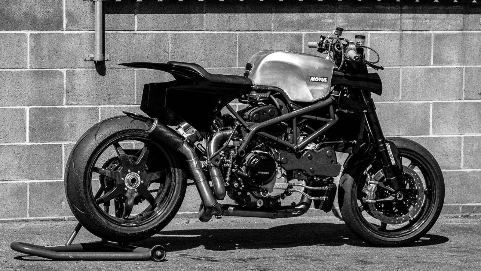 Για αυτό, οι γνωστοί Tuners της Deus ex Machina αποφάσισαν να εξοπλίσουν ένα Hypermotard με τον θηριώδη κινητήρα της Ducati 1198RS, σε αγωνιστική ρύθμιση, ο οποίος, ούτε λίγο ούτε πολύ, αποδίδει 200 ίππους. Κάθε τι περιττό έχει αφαιρεθεί από την μοτοσυκλέτα, η οποία είναι ένα παράδειγμα σπαρτιατικής εμφάνισης και ζυγίζει μόλις 156 κιλά –οι tuners δηλώνουν ότι 40 κιλά έχουν αφαιρεθεί από την αρχική μοτοσυκλέτα.