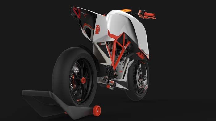 Το πλαίσιο και ο κινητήρας των 1.290 κ.εκ. ανήκουν στην ΚΤΜ, ενώ η εξάτμιση καταλήγει κάτω από τη σέλα της μοτοσικλέτας, ενσωματωμένη χαμηλά στο κοστούμι, ώστε να μην επηρεάζει αρνητικά το ζύγισμα. Ο Ιταλός σχεδιαστής μετέφερε και το πίσω αμορτισέρ τόσο χαμηλά που βρίσκεται στο ύψος των μαρσπιέ του αναβάτη και συνδέεται με το μονόμπρατσο αλουμινένιο πιρούνι μέσω μοχλικού συστήματος. Τα φρένα του συγκεκριμένου concept, τέλος, διαθέτουν ακτινικά τοποθετημένες δαγκάνες της Brembo.