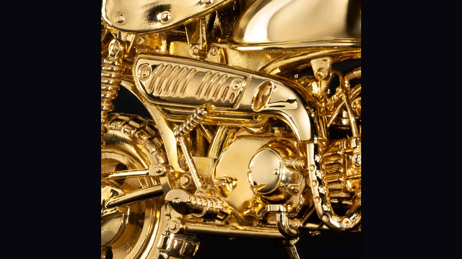 Αν είσαι κι εσύ "die-hard" λάτρης του Honda Monkey, τότε σίγουρα θα ήθελες να κάνεις δικό σου αυτό το κόσμημα που δημιούργησε η U-Treasure, αν βέβαια το "σηκώνει" η τσέπη σου. Το εν λόγω κόσμημα είναι ένα ακριβές αντίγραφο κλίμακας 1/12 της περιορισμένης σειράς Honda Monkey Z50J Gold Limited Edition που κυκλοφόρησε το 1984 σε 5.000 μονάδες το οποίο όμως θα είναι επιχρυσωμένο και όχι απλώς βαμμένο με χρυσό χρώμα.