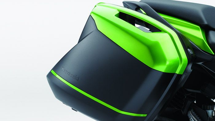 Η πρώτη αλλαγή αφορά στις πλαϊνές βαλίτσες του προαιρετικού εξοπλισμού, οι οποίες αποκτούν νέο χρώμα και σχεδιασμό. Οι βαλίτσες του προηγούμενου μοντέλου έγιναν στόχος κριτικής, καθώς δε συμβάδιζαν με τον sport σχεδιασμό της ουράς και βασίζονταν πάνω σε ατσάλινες βάσεις που δεν κολάκευαν τη μίνιμαλ ουρά του Z1000. Η Kawasaki, λοιπόν, πήρε στα σοβαρά αυτές τις κριτικές και προχώρησε στην πρώτη βελτίωση. Οι συγκεκριμένες βαλίτσες, μάλιστα, έχουν χωρητικότητα 28 λίτρων έκαστη και χωρούν από ένα full face κράνος.