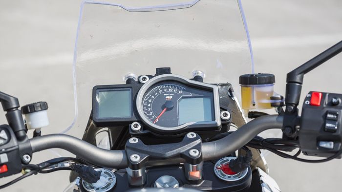 Ξεκάθαρη αναφορά ως προς τις διαδρομές των αναρτήσεών του δε γίνεται, οπότε μένουμε προς το παρόν με την απορία για το αν είναι όντως λίγο ψηλότερο από το Super Duke όπως φαίνεται ή όχι.