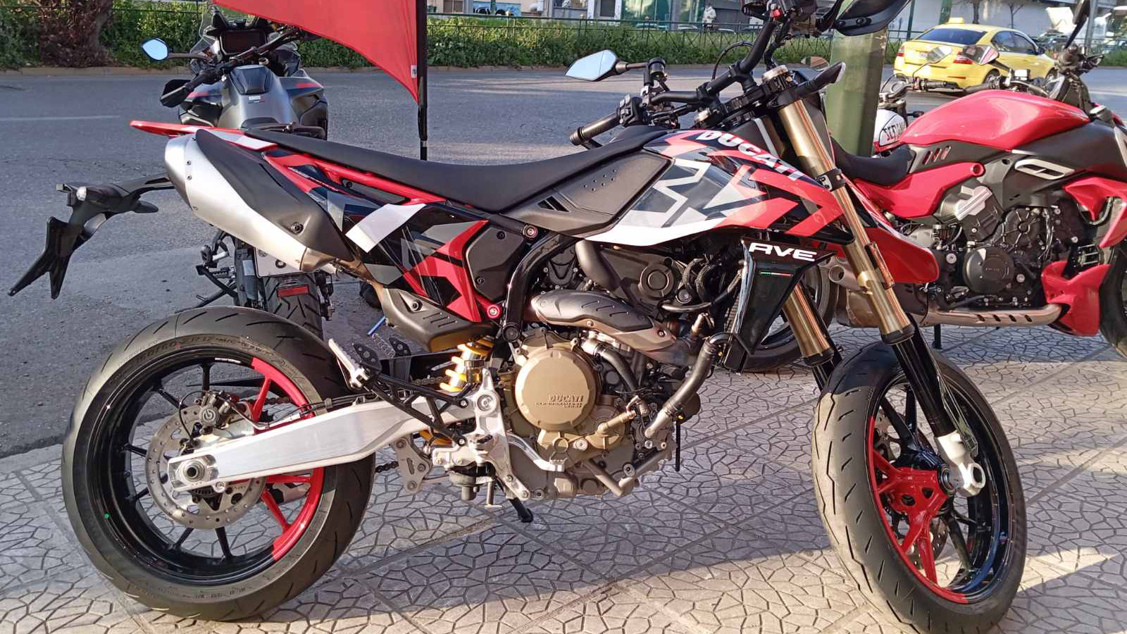 Ο κινητήρας προέρχεται από τον Superquadro1285cc του Panigale1299 και αποδίδει 77,5 ίππους στις 9.750 σ.α.λ. και 63 Nm ροπής στις 8.000 σ.α.λ. Βασικό σε αυτόν τον κινητήρα είναι ότι χρειάζεται αλλαγή λαδιών κάθε 15.000 χιλιόμετρα και στα 30.000 χλμ. θέλει έλεγχο και ενδεχόμενη ρύθμιση του διάκενου των βαλβίδων. Περισσότερες λεπτομέρειες για τον κινητήρα μπορείτε να δείτε εδώ. Το πλαίσιο είναι ατσάλινο, τύπου Trellis, ενώ το αλουμινένιο ψαλίδι ζυγίζει μόλις 3,9 κιλά, αυξάνοντας την ακαμψία και μειώνοντας το βάρος. Το μήκος του (572mm) επιτρέπει στο μεταξόνιο να παραμείνει στα 1443mm, για καλύτερο χειρισμό. Στο μπροστινό βρίσκουμε ένα ανεστραμμένο πιρούνι 45mm από τη Marzocchi, πλήρως ρυθμιζόμενο με διαδρομή 210mm και πίσω ένα επίσης πλήρως ρυθμιζόμενο μονοσόκ αμορτισέρ με διαδρομή 240mm. Το σταμάτημα της μοτοσυκλέτας αναλαμβάνουν ένας δίσκος 330mm μπροστά με δαγκάνα Brembo και ένας δίσκος 245mm πίσω με μονοπίστονη δαγκάνα Brembo, οι οποίοι συνεργάζονται με Cornering ABS από την Bosch. Οι ελαφριές χυτές ζάντες είναι 17” και ντύνονται με τα Pirelli Diablo Rosso IV, σε διαστάσεις 120/70 μπροστά και 160/60 πίσω. Η σέλα βρίσκεται 904mm πάνω από το έδαφος, αλλά μπορεί να χαμηλώσει μέχρι τα 889mm με το αντίστοιχο αξεσουάρ, ενώ το Hypermotard 698 σταματάει τη ζυγαριά στα 151 κιλά με το ντεπόζιτο των 12 λίτρων άδειο. Σχεδιαστικά, η νέα Ducati ακολουθεί επιθετικές και κοφτές γραμμές, από τον LED προβολέα μπροστά μέχρι την ελαφρώς ανασηκωμένη ουρά πίσω και χρωματικά διατίθεται στον κλασσικό κόκκινο χρωματισμό της Ducati, με την έκδοση REV να αποκτά τον χρωματισμό “Graffiti”. Στο κομμάτι του εξοπλισμού, η Hypermotard 698 έχει Riding Modes, Traction Control, Wheelie Control, Engine Brake Control, Brake Light, Power Launch, Quickshifter Up/Down, φουλ LED φωτισμό, αλουμινένια μπάρα τιμονιού και το Cornering ABS. Ο χειρισμός όλων αυτών γίνεται μέσω μιας TFT οθόνης, με το χειρισμό της να γίνεται από τους διακόπτες στα αριστερά του τιμονιού. Η τιμή της Hypermotard 698 Mono είναι 14.600 ευρώ και 15.600 ευρώ για την έκδοση RVE.
