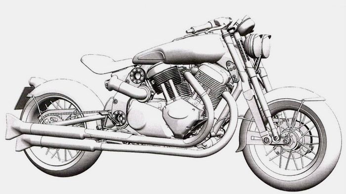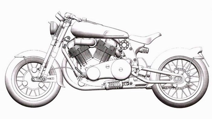 Η νέα μοτοσικλέτα, όπως φαίνεται και από τα σχέδια που έχουν κατατεθεί για κατοχύρωση στο Ευρωπαϊκό Γραφείο Πατεντών είναι ένα cruiser με ρετρό-μοντέρνα αισθητική, πιρούνι τύπου Girder και ένα μεγάλο αερόψυκτο V2 κινητήρα, ο οποίος εικάζεται ότι θα προέρχεται από τον αμερικάνικη S&S, με χωρητικότητα 1.917 κ.εκ. και απόδοση κοντά στους 100 ίππους. Περιέργεια προκαλεί το εμπρός δισκόφρενο το οποίο φαίνεται να καλύπτεται αλλά και να συνδυάζεται με τρεις ξεχωριστές μονοπίστονες δαγκάνες με μεγάλης διαμέτρου έμβολα.