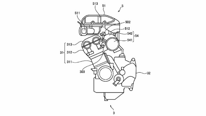 Τα σχέδια, όπως θα δείτε, αναφέρονται σε κομπρέσορα, όπως στην περίπτωση του Kawasaki H2, δηλαδή υπερσυμπιεστή που παίρνει κίνηση από τον κινητήρα. Στα δύο σχέδια βλέπουμε τις δύο supersport μοτοσυκλέτες, με την δεξιά όψη να αναφέρεται στο 750 και την αριστερή στο 1000.