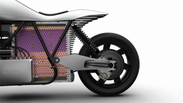 Η Ethec, όπως οι επιστήμονες ονόμασαν την μοτοσυκλέτα, θα φέρει μια μπαταρία πραγματικά στην αιχμή της τεχνολογίας. Η κατασκευή, που μονοπωλεί την εμφάνιση της μοτοσυκλέτας –για την οποία δεν έχουν δημοσιευθεί και πολλές φωτογραφίες…- είναι τεράστια και πολλοί μπορεί να  την κρίνουν επιφανειακά, με την εμφάνιση μόνο. Όμως πίσω από αυτή την τεχνοκρατική όψη, κρύβεται μια χωρητικότητα 15 kWh και ένα σύστημα ψύξης τύπου στερεάς αντλίας θερμότητας και ψεκασμού λαδιού. Η μπαταρία έχει, ούτε λίγο ούτε πολύ, 1.260 στοιχεία!