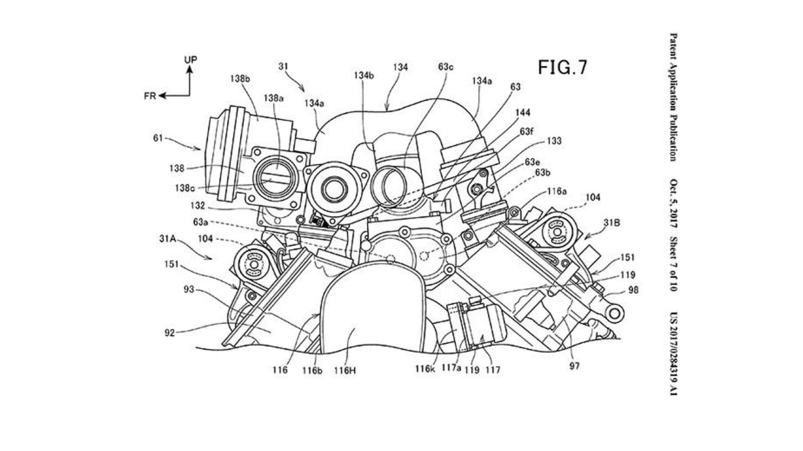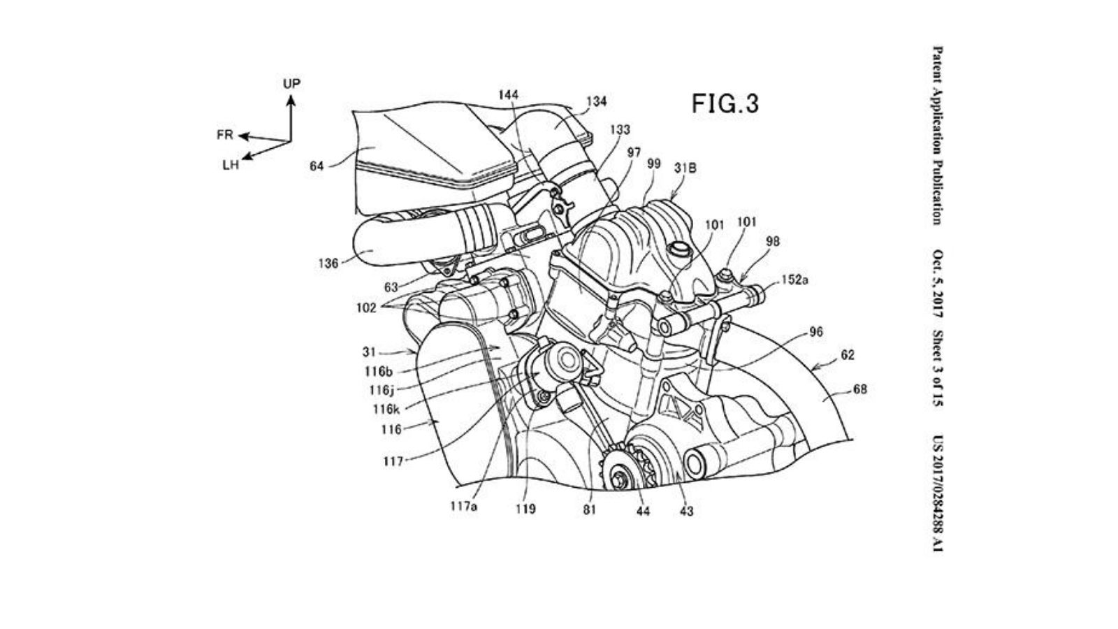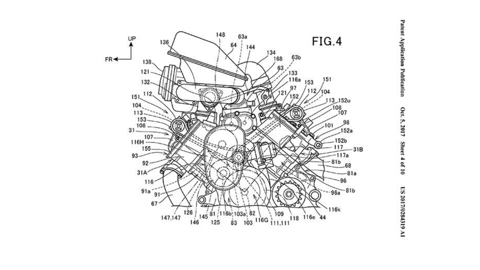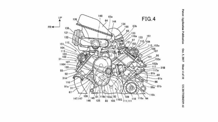 Τα σκίτσα που συνοδεύουν την πατέντα δείχνουν μια γυμνή, δικύλινδρη, μεσαίου μεγέθους μοτοσυκλέτα η οποία έχει πάνω της περιφερειακά, όπως σέλα και μαρσπιέ συνεπιβάτη και φαίνεται να είναι ένα πραγματικό έργο και όχι μια απλή θεωρητική μακέτα. Για συγκέντρωση των μαζών, ο μικρός υπερσυμπιεστής έχει τοποθετηθεί ανάμεσα στους δυο κυλίνδρους και υποθέτουμε ότι ο κινητήρας θα έχει χωρητικότητα 600 με 750 κυβικά, χωρίς, βέβαια, να υπάρχουν επίσημα στοιχεία. Όμως, με τη βοήθεια του turbo, η απόδοση ενός τέτοιου κινητήρα, θα είναι ανάλογη ενός ατμοσφαιρικού 1000 κυβικών. Ο υπερσυμπιεστής παίρνει κίνηση από τον στρόφαλο του κινητήρα μέσω δυο μεγάλων γραναζιών, ενώ η κεφαλή φαίνεται να είναι μικρότερη από το συνηθισμένο. Η Honda ήδη χρησιμοποιεί κεφαλές με έναν εκκεντροφόρο στα χωμάτινα μοντέλα της, ενώ η τεχνολογία αυτή πέρασε και στο Africa Twin.