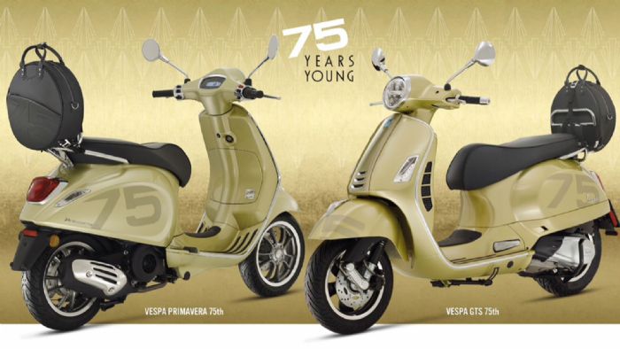 Το 2021 σηματοδοτεί την 75η επέτειο της Vespa και αποτελεί μια πρώτης τάξεως ευκαιρία, για την παρουσίαση μιας επετειακής έκδοσης για το μοντέλο. Η Vespa 75th, όπως χαρακτηριστικά λέγεται το νέο επετειακό μοντέλο, θα είναι διαθέσιμη στην σειρά Primavera (50, 125 και 150 κυβικά) και GTS (125 και 300 κυβικά) και θα διατεθεί αποκλειστικά για το 2021. Βασικό χαρακτηριστικό του μοντέλου είναι το μεταλλικό κίτρινο χρώμα «Giallo 75th», το οποίο κάνει μια μοντέρνα αναφορά στις αποχρώσεις της μόδας των 40s. Ο αριθμός 75 κοσμεί το εμπρός φτερό και τα πλαϊνά πάνελ σε πιο σκούρο χρώμα, ενώ η ίδια απόχρωση υπάρχει και στην «γραβάτα» του εμπρός μέρους.