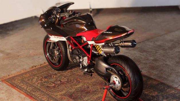 Ένας στρογγυλός προβολέας LED κυριαρχεί στο αεροδυναμικό φέρινγκ. Το ατσάλινο πλαίσιο και οι σφυρήλατες ζάντες αλουμινίου προέρχονται από τη Ducati 996 ενώ το μονόμπρατσο ψαλίδι προήλθε από ένα Ducati 1098. Το ανεστραμμένο τηλεσκοπικό πιρούνι και τα φρένα της Brembo προέρχονται από νεότερα μοντέλα της Ducati.