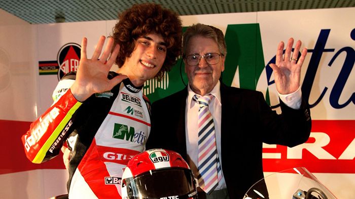 Δύο παγκόσμιοι πρωταθλητές της Gilera συναντιούνται. Δεξιά ο Duke, αριστερά ο Marco Simoncelli που έμελλε να φύγει πολύ πρόωρα.