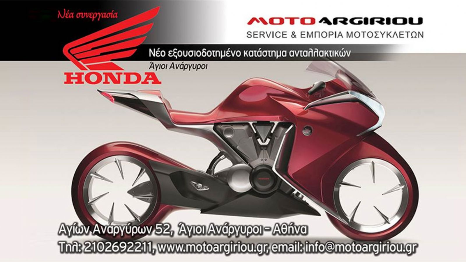 Αν θέλεις να κάνεις το καλύτερο δώρο στην καλή σου και ψάχνεις γνήσια ανταλλακτικά Honda δεν έχεις παρά να απευθυνθείς στο MOTOARGIRIOU η οποία πρόσφατα ξεκίνησε νέα συνεργασία με τη Honda ως εξουσιοδοτημένο κατάστημα ανταλλακτικών. Το έμπειρο προσωπικό θα σε βοηθήσει να επιλέξεις τον σωστό κωδικό, ενώ το πολύ μεγάλο στοκ ετοιμοπαράδοτων ανταλλακτικών εγγυάται την άμεση εξυπηρέτησή σου είτε είσαι ιδιώτης, είτε επαγγελματίας. Όσο για τις τιμές, δύσκολα θα βρεις φθηνότερα.