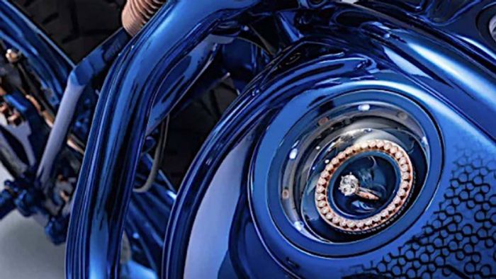 Πόσο μακριά μπορούν να φτάσουν οι custom builders σήμερα, προκειμένου να δημιουργήσουν μια μοτοσυκλέτα όπως καμία άλλη; Από ότι φαίνεται, μπορούν να χορέψουν τον χορό των…εκατομμυρίων, χωρίς δισταγμό! Αυτή η μοτοσυκλέτα που βλέπετε μπροστά σας είναι η Harley-Davidson Blue Edition, που δημιουργήθηκε από τον Ελβετό ωρολογοποιό και κοσμηματοποιό Bucherer σε συνεργασία με τους Γερμανούς κατασκευαστές Bunderbike.