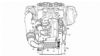 Όψη του κινητήρα από την αριστερή πλευρά, από την οποία φαίνονται η τοποθέτηση του κομπρέσορα και του αυλού εισαγωγής.