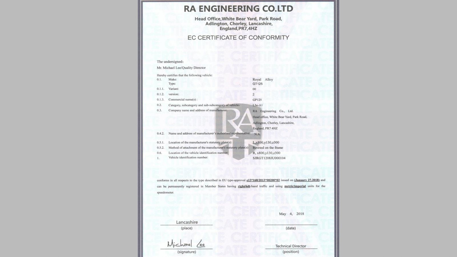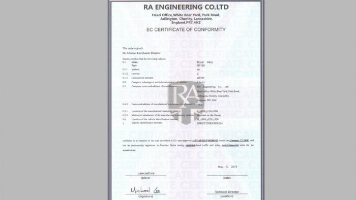 H Royal Alloy (RA Engineering Co.Ltd) με έδρα το Lancashire της Αγγλίας, προήλθε μετα απο διακοπή πολυετούς συνεργασίας με άλλη εταιρεία δίτροχων στο Ηνωμένο Βασίλειο, για την οποία ήλεγχε την κατασκευή τους, την έρευνα και την ανάπτυξή τους.
