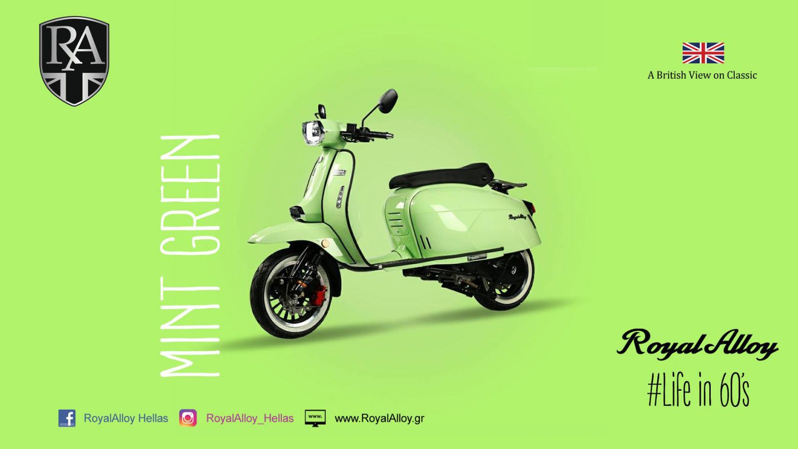 Tη διάθεσή τους για την ελληνική αγορά έχει αναλάβει η Buggy Motors, γνωστή απο την αντιπροσώπευση στην Ελληνική αγορά οχημάτων όπως τα BeachBuggy (Summer Cars), τα Joyner (OffRoad & 4x4) και τα Secma (sport FunCars). Ενα ταχύτατα αναπτυσσόμενο δίκτυο παγκοσμίως, διακινεί τα προϊόντα RA (Scooter, αξεσουάρ και Ενδύματα Royal Alloy) στις 5 ηπείρους, ενω στο υπερσύγχρονο εργοστάσιό της στην Ταϊλάνδη, θα μεταφερθεί το μεγαλύτερο μέρος της παραγωγής της φίρμας, για την κάλυψη της παγκόσμιας ζήτησης.