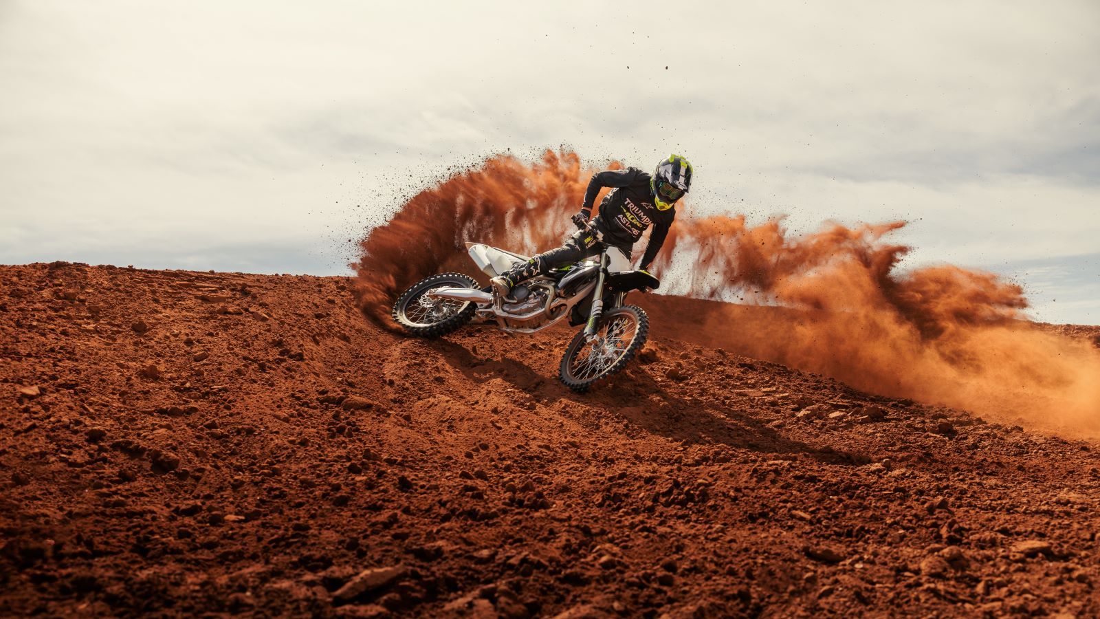 Το premium σύστημα πέδησης της Brembo διαθέτει διπλή πλευστή μπροστινή δαγκάνα με έμβολο 24 χλστ, πλευστή πίσω δαγκάνα μονού εμβόλου 26 χλστ και δίσκους Galfer 260 χλστ μπροστά και 220 χλστ πίσω. Οι τροχοί, με ζάντες αλουμινίου DirtStar 7000 Series και επεξεργασμένα κέντρα αλουμινίου, είναι εξοπλισμένοι με ελαστικά Pirelli Scorpion MX32 mid-soft. Το τιμόνι Pro-Taper ACF carbon core και τα γκριπ ODI half-waffle ολοκληρώνουν το σύνολο.