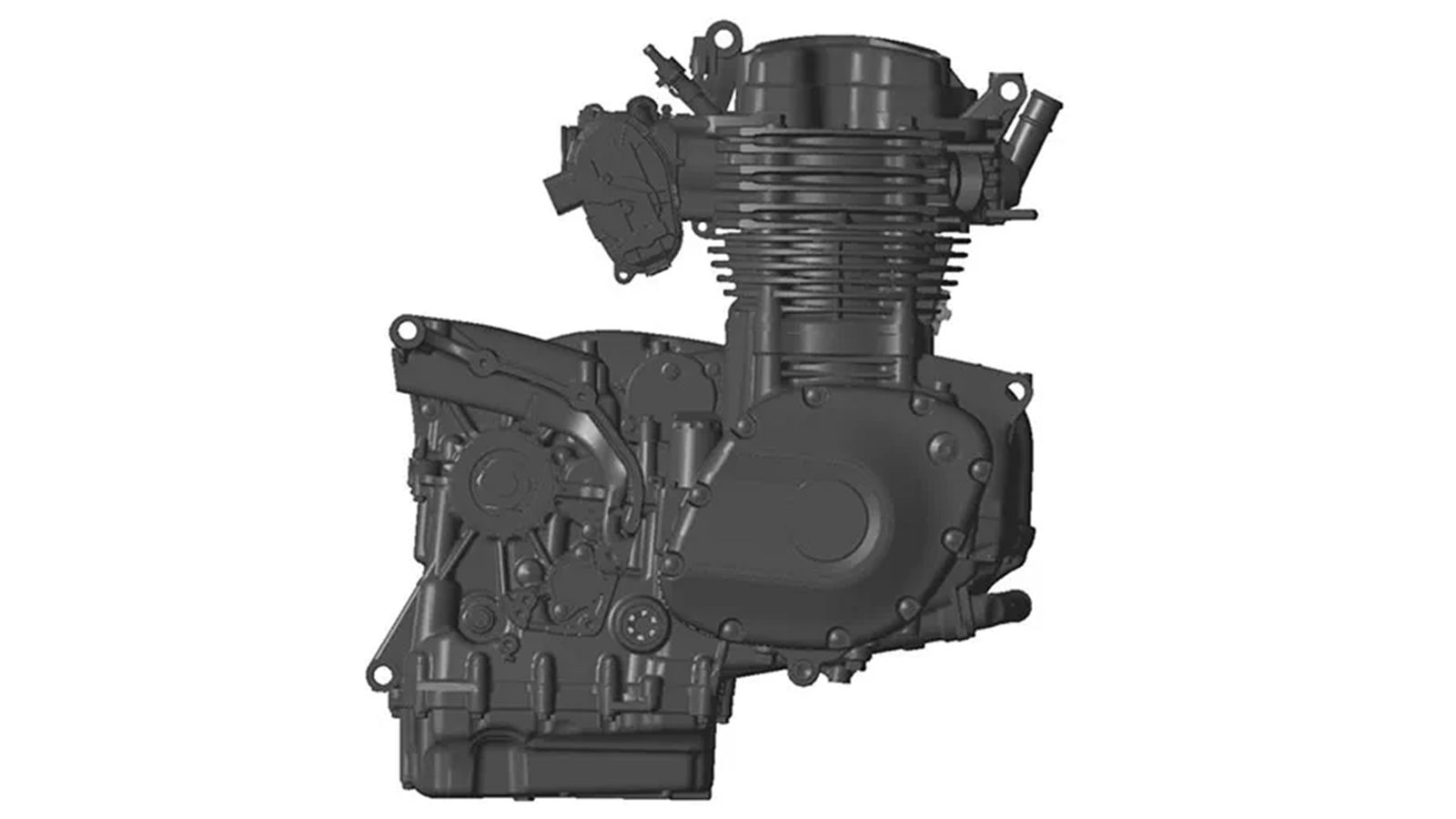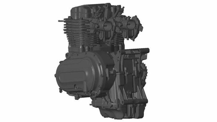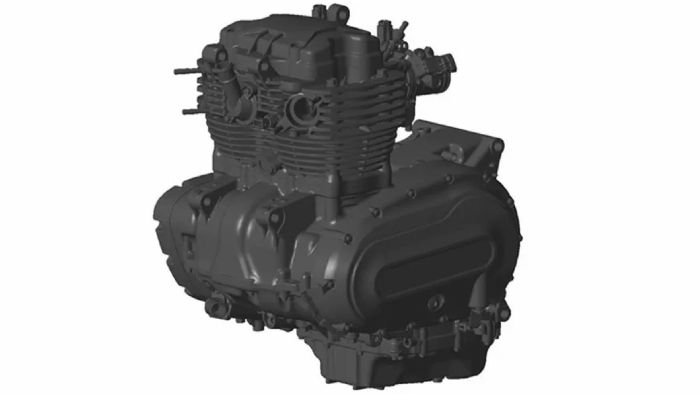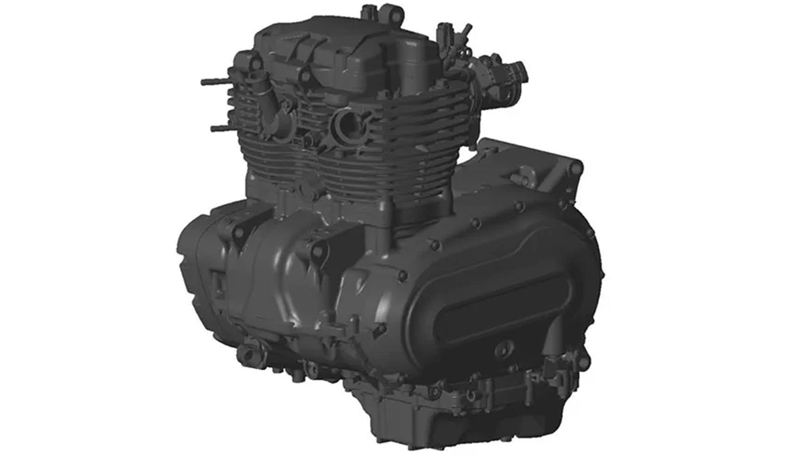 Κοιτάζοντας τις φωτογραφίες, είναι σαφές ότι ο κινητήρας θυμίζει πάρα πολύ τον δικύλινδρο της σειράς Bonneville της Triumph, με τους κατακόρυφους κυλίνδρους, την πλευρά της πρωτεύουσας μετάδοσης να είναι η αριστερή και τα πτερύγια της «αερόψυξης». Ακόμα και το καπάκι της πρωτεύουσας μετάδοσης θυμίζει αυτό των Triumph, ενώ ο κινητήρας κάνει χρήση ψεκασμού, χωρίς να τον «καμουφλάρει» πίσω από κατασκευές μορφής καρμπυρατέρ.