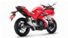 Ας ξεκινήσουμε από την εμφάνιση της μοτοσυκλέτας, η οποία είναι αρκούντως σπορ, ώστε να προσελκύσει εύκολα την προσοχή. Προσέξτε τις ιδιαίτερα αιχμηρές λεπτομέρειες: στην μάσκα, το πίσω μέρος και την εξάτμιση, που θυμίζει ακριβό aftermarket τελικό. Στην μοτοσυκλέτα έχει τοποθετηθεί ανεστραμμένο πιρούνι εμπρός, με 2 δίσκους φρένων και ακτινικές δαγκάνες να φροντίζουν για την επιβράδυνση. Στο πίσω μέρος, φαίνεται ένα ψαλίδι το οποίο αν και πιστεύουμε ότι είναι σιδερένιο, έχει πολύ προσεγμένη σχεδίαση που παραπέμπει σε κομμάτι αλουμινίου.