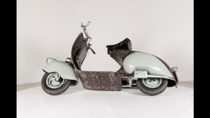 Πρόκειται για χειροποίητο όχημα, με μονοκύλινδρο, δίχρονο, αερόψυκτο κινητήρα 98 cc και κιβώτιο τριών ταχυτήτων. Το θρυλικό scooter-αντίκα τίθεται σε δημοπρασία και η τιμή της αναμένεται να κυμανθεί μεταξύ 250.000 και 300.000 ευρώ.