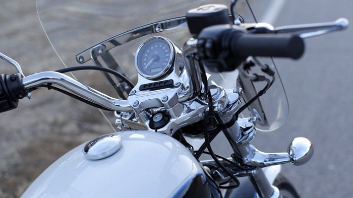 Οι αφαιρούμενες βαλίτσες, αν και δείχνουν «κλασικές» και μαλακές είναι στην πραγματικότητα σκληρές και κλειδώνουν, ενώ ο μεγάλος ανεμοθώρακας μπορεί να αφαιρεθεί. Τα πίσω αμορτισέρ ρυθμίζονται ως προς την προφόρτιση των ελατηρίων τους ενώ σε σχέση με το 883 SuperLow τα μαρσπιέ έχουν μετατοπιστεί προς τα εμπρός κατά 762 χλστ. Άλλα στοιχεία που κάνουν το «1200Τ» να ξεχωρίζει είναι οι χυτοί αλουμινένιοι τροχοί με τα πέντε μπράτσα και οι γενναιόδωρες δόσεις χρωμίου που κάνουν αισθητή την παρουσία τους. Σε αυτό το σημείο να πούμε ότι ο ανεμοθώρακας μπορεί να ρυθμιστεί ως προς το ύψος για να ταιριάζει καλύτερα με τον σωματότυπο του αναβάτη.