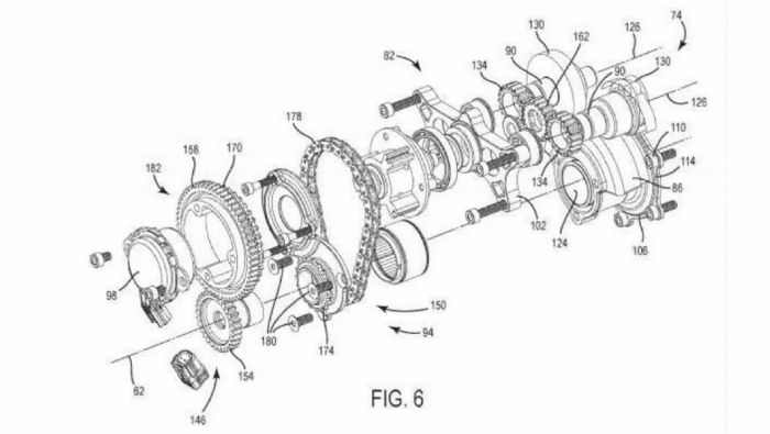 Η καρδιά του συστήματος φαίνεται να είναι το εξάρτημα με τον αριθμό 74 στο διάγραμμα. Ο στρόφαλος συνδέεται σε ένα μικρό γρανάζι (#154), το οποίο περιστρέφει το γρανάζι από πάνω (#158). Πίσω από αυτό υπάρχει ένα μικρότερο γρανάζι που γυρίζει μια αλυσίδα (#178), ο οποίο με τη σειρά της γυρνά ένα αντίβαρο στην απέναντι πλευρά του στροφάλου. Η μονάδα του μεταβλητού χρονισμού έχει τον αριθμό 98 και συνδέεται στο γρανάζι του εκκεντροφόρου που ελέγχει τον χρονισμό των βαλβίδων εισαγωγής και εξαγωγής.