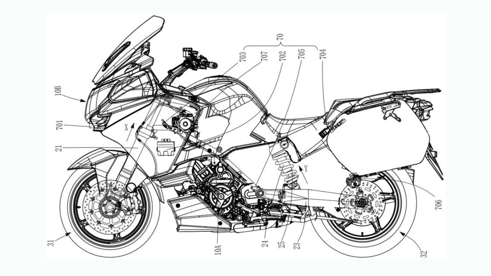 Η νέα πατέντα της CFMOTO απεικονίζει το σύστημα τοποθετημένο στην ναυαρχίδα της εταιρείας την 1250 TR-G η οποία πωλείται εκτός Ευρώπης και αποτελεί και όχημα της αστυνομίας σε κάποιες από αυτές. Σχεδιαστικά θυμίζει τα μεγάλα Touring μοντέλα όπως το R 1250 RT και κάνει χρήση μίας εξελιγμένης από τη CFMOTO μορφής του δικύλινδρου, διάταξης V κινητήρα LC8 της KTM στα 1.279cc. Οι δύο εταιρείες εξάλλου διατηρούν συνεργασία όπως είναι γνωστό αφού μοτοσυκλέτες όπως το 800MT και 800 NK της CFMOTO μοιράζονται κοινά μηχανικά μέρη με το 790 Adventure της KTM. Το 1250 TR-G διαθέτει ήδη πολύ πλούσιο εξοπλισμό με την μεγαλύτερη TFT οθόνη στην αγορά στις 12,3 ίντσες και χαρακτηριστικά όπως keyless start, σύστημα ελέγχου της πίεσης των ελαστικών και πλοήγηση. Στον εξοπλισμό της μοτοσυκλέτας μάλιστα υπάρχει ήδη ραντάρ που χρησιμοποιείται μεταξύ άλλων και για το cruise control.